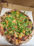 BBQ sauce, mozzarella, chicken breast, bell peppers, onions & cilantro.