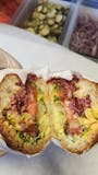 Mortadella with mayo, mustard, lettuce, tomatoes, pickles, onions, banana peppers & cheese.
